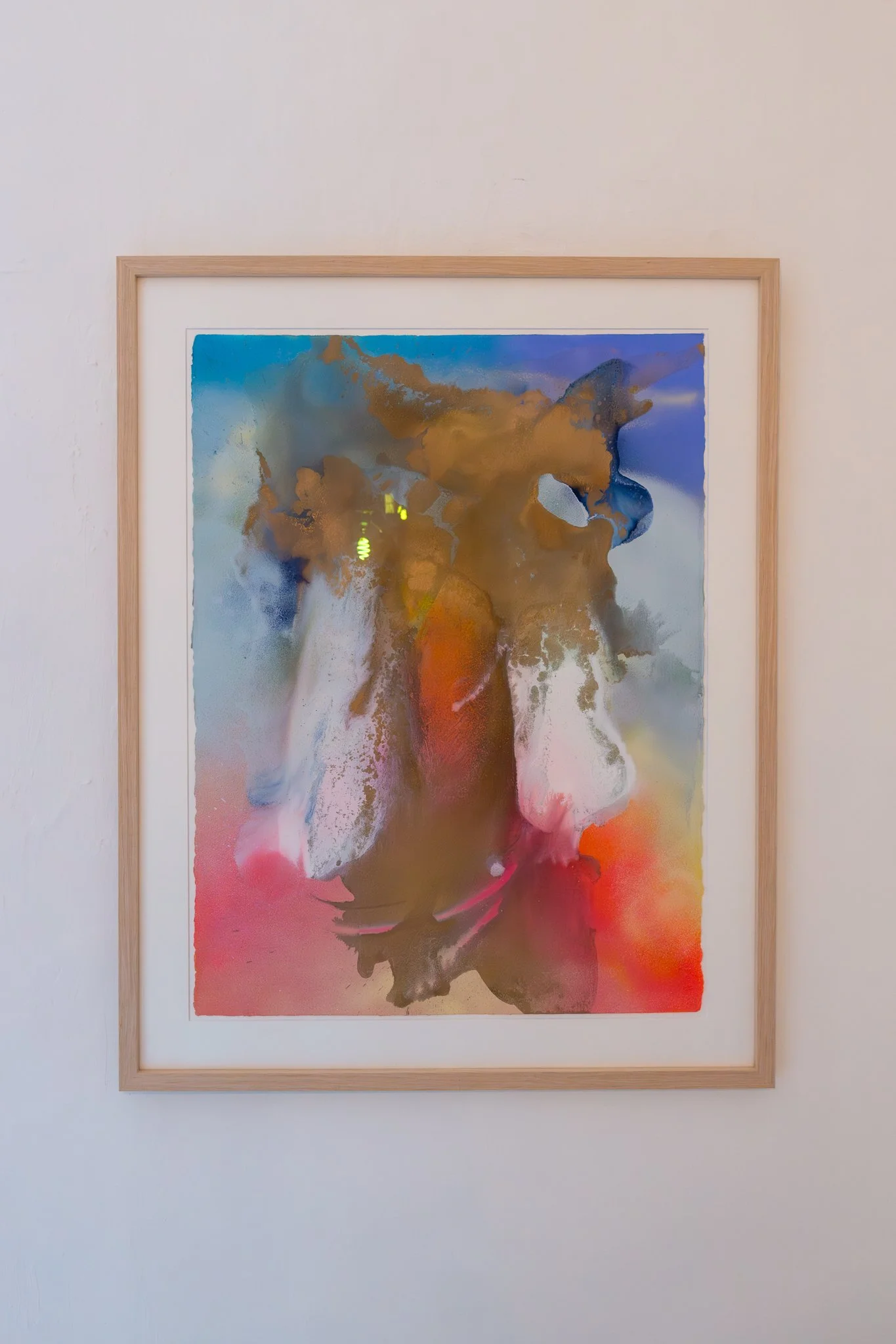 is the space between one thing and another. Perhaps it’s moving through an emotion, for example from fear to love, or that in-between feeling as you migrate from your home to a new country. Or it may be a doorway into another world. Whatever it is for you in this moment, I invite you to take some time to journey with me through this exhibition. You’ll find explosions of colour, pieces of earth moulded by the hands of ancient civilisations, and specks of iron burnt into vibrant pigments, brought to life by fire and water. This show is about transformation: you know you cannot go back to who you were, and you do not yet know who you are becoming, so you trust the process and move forward. Welcome.